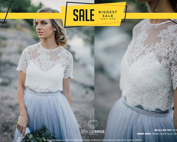 Lace Wedding Dress Long Tulle Wedding Dress Wedding Separates Bridal Crop Top Lace Crop Top With Floor Length Tulle Skirt