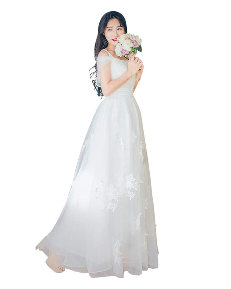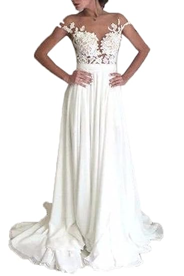 Fishlove Womens Simple Wedding Dress Chiffon Beach Bridal