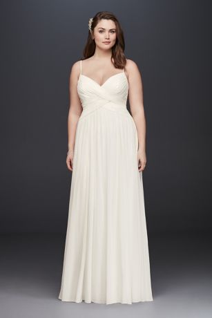 David S Bridal Ruched Bodice Chiffon Plus Size Wedding Dress Style 9wg3856