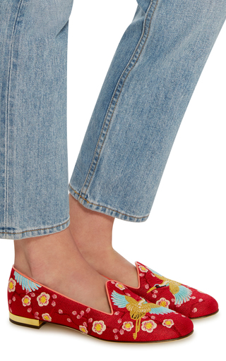 Cherry Blossom Embroidered Canvas Slippers By Charlotte Olympia