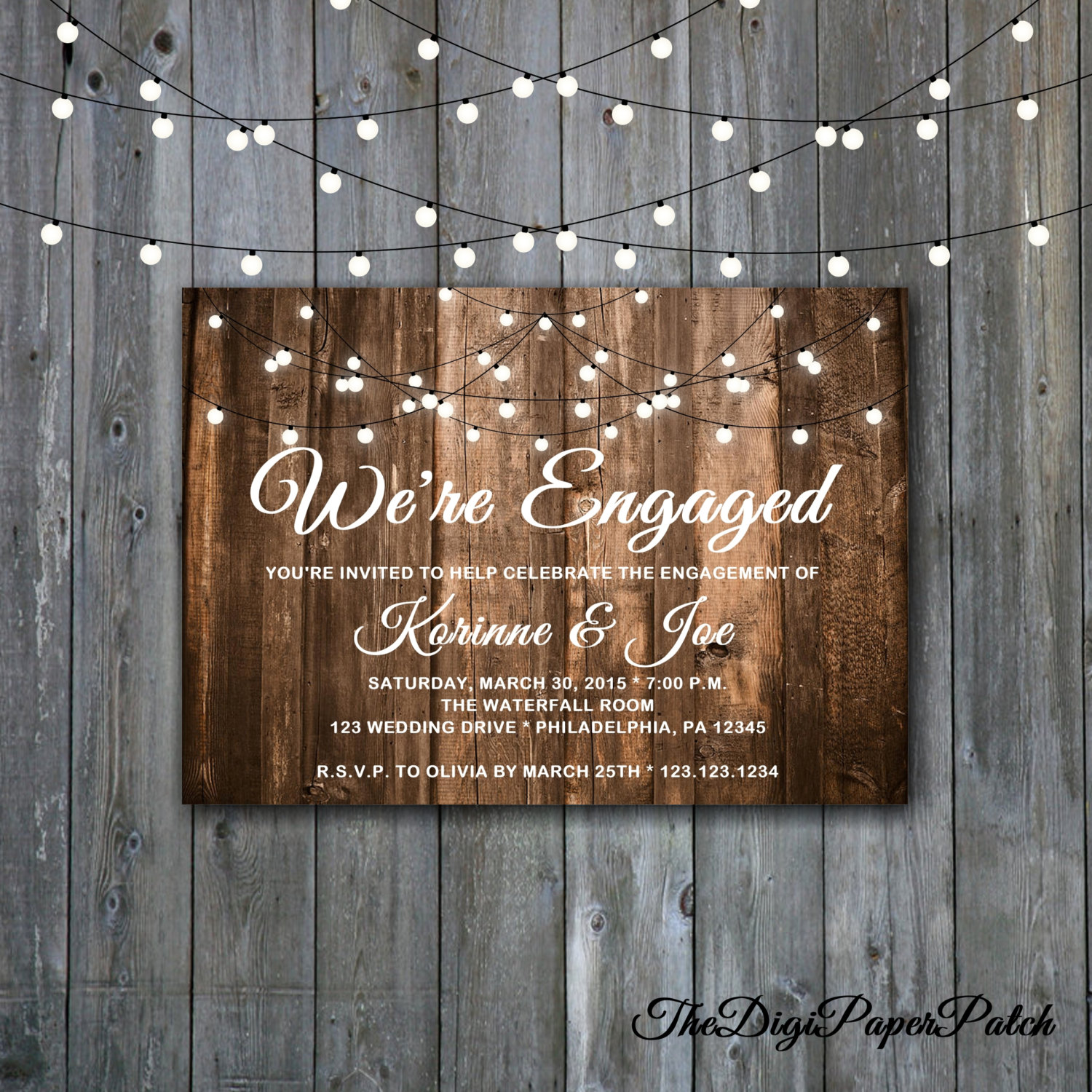 Fancy Engagement Party Invitation Card Plus Rustic String Lights