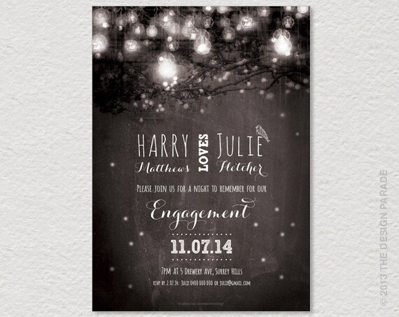 Printable Fairy Lights Engagement Invitation String Lights Garden Party