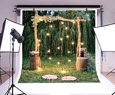 Baocicco 8x8ft Rustic Style Engagement Ceremony Backdrop Stunning Wedding Arch Decorations Twinkle Lights Floral Bouquets Background Wedding Date