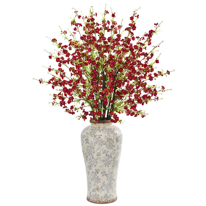 Nearly Natural Cherry Blossom Artificial Arrangement In Ruby Vase