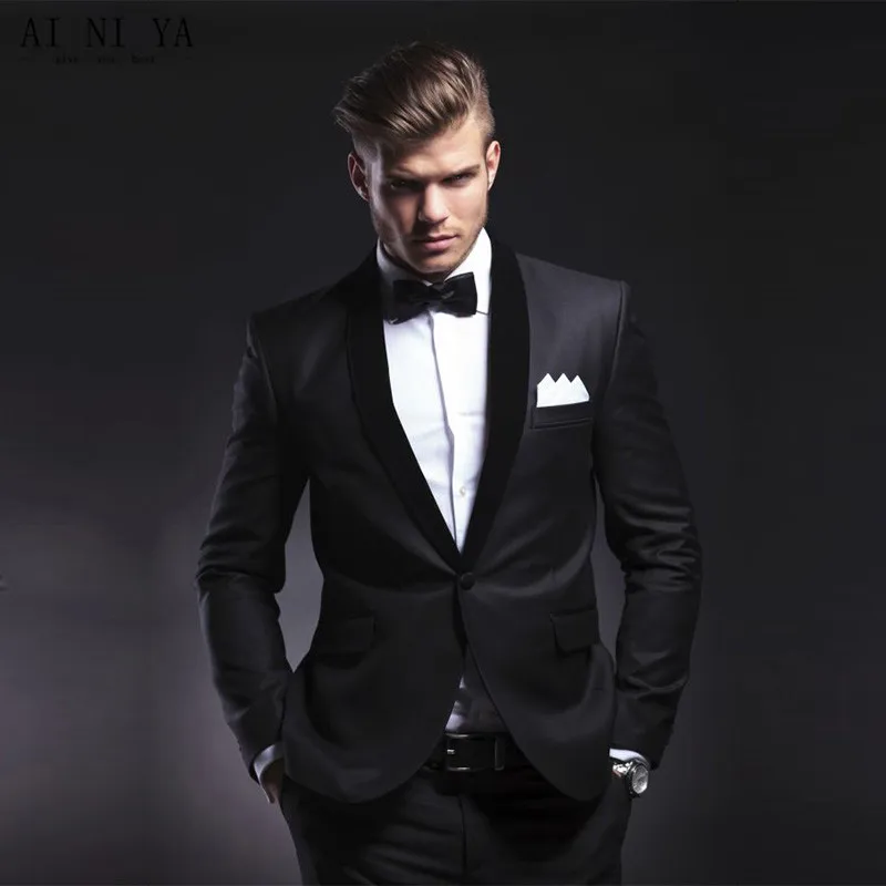 Mens Designer Suits Black Groom Suits Groomsmen Tuxedos Best Men