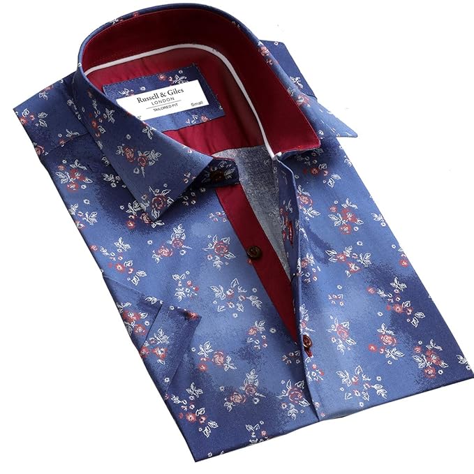 Russell Giles Mens Short Sleeve Designer Floral Paisley Casual
