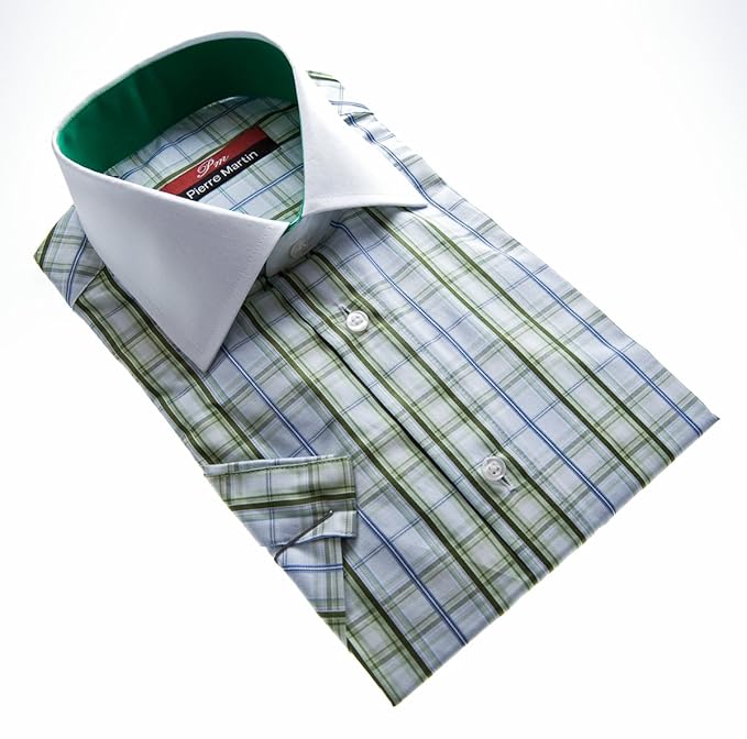 Pierre Martin Paris Men S Designer Short Sleeve Shirt Check